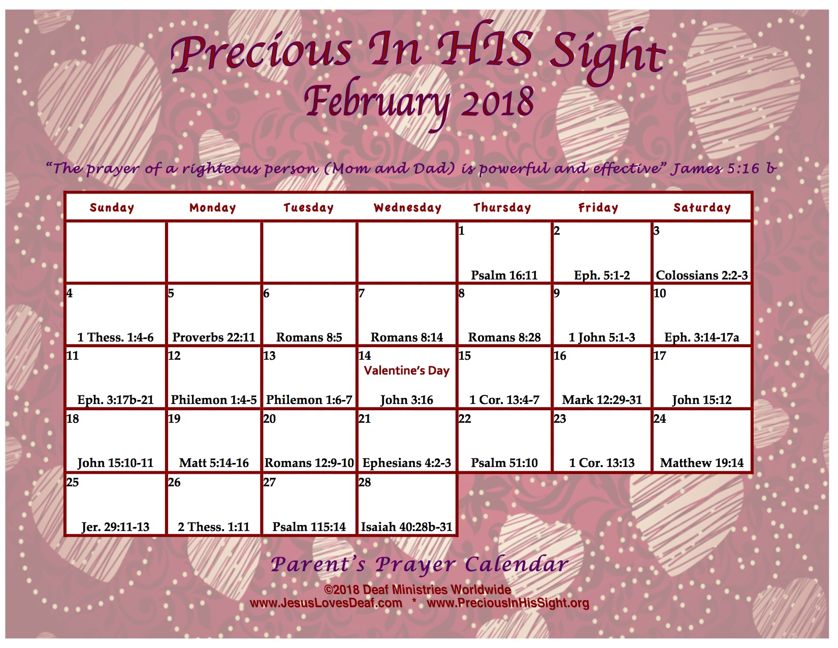 To the left is this month’s Precious In HIS Sight Scripture Prayer Calendar. Click on the Calendar and it enlarges in a separate window so you can read the daily scriptures easily.