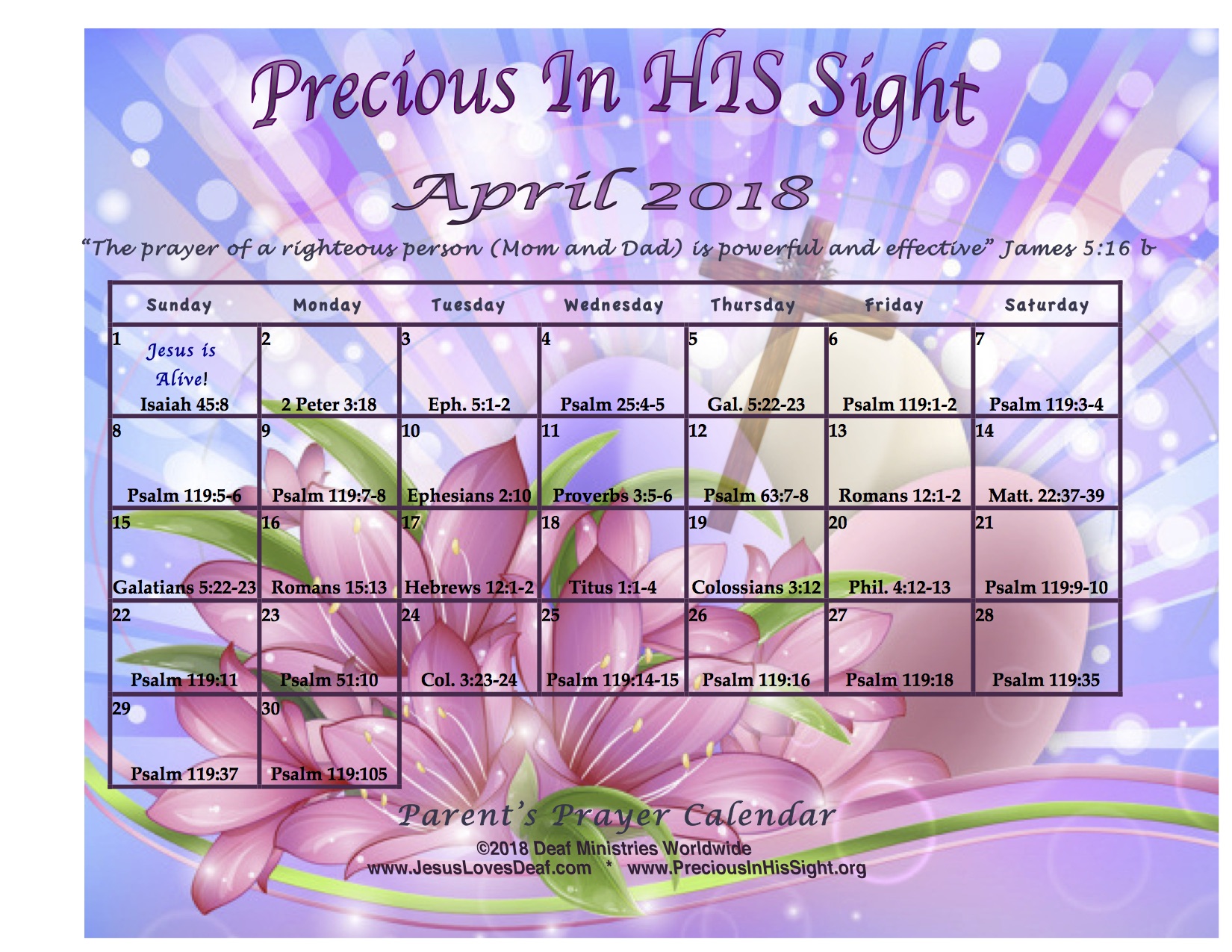 Use this month’s Scripture Prayer Calendar to pray for your loved ones. Click on the Calendar and the Calendar opens BIGGER in a separate window so that you can read the scripture references easily.