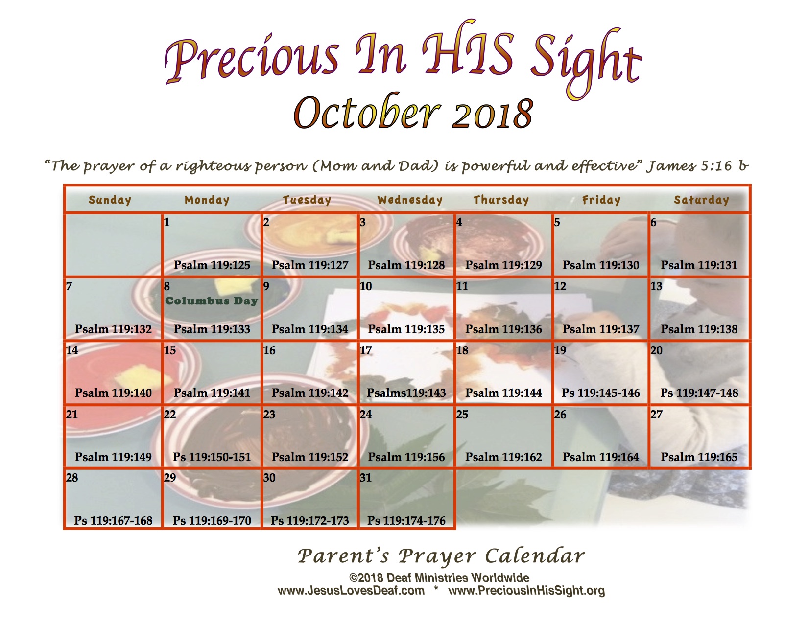 Through the years the monthly Precious In HIS Sight Prayer Calendar has helped me faithfully pray for my loved ones. Click on the Calendar and it opens enlarged in a new window making it easy to read the Bible references.